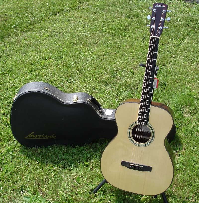 Well this has arrived at it's new home. Mine :GRN> Fallenroadie said it best, it is one sweet, sweet, guitar. It has the amazing volume and bass response from the 12 fret design and the highs just ring and ring. I e-mailed Larrivee the serial number (19xxx) in hopes they can tell me the exact year of manufacture and whether it was some kind of custom run, etc.