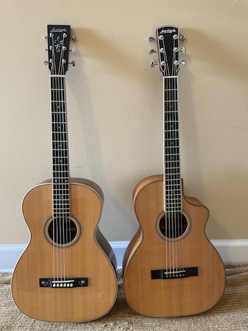 The second is a Martin 000 Custom with a 12 fret 24.9" scale, slotted headstock, scalloped bracing, Sitka spruce top, 3 piece mahogany back and sides.